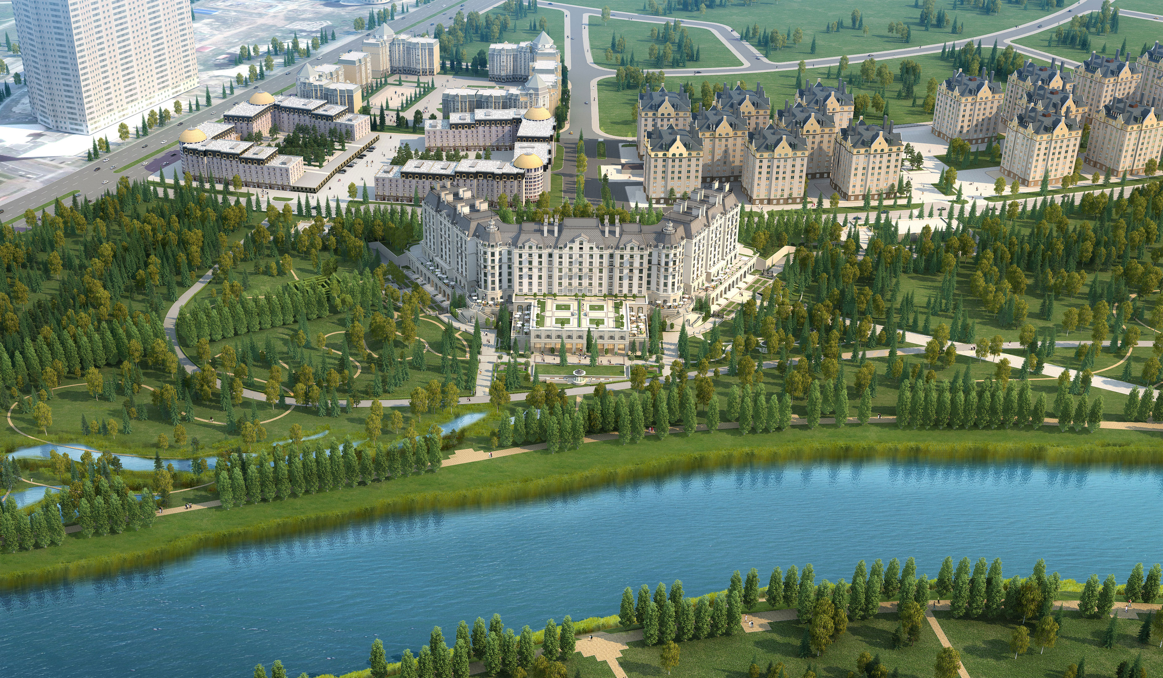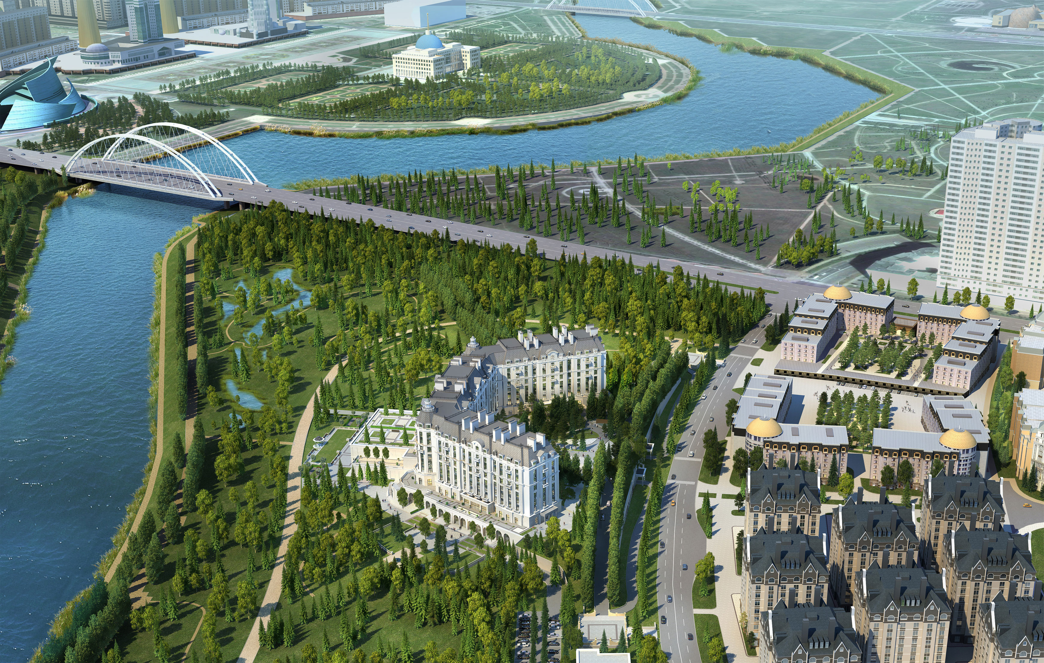 Located in the heart of Astana, Kazakhstan, the Four Seasons Hotel is a 5-star luxury development designed by ReardonSmith Architects at the request of the Lancaster Group. Inspired by French châteaux, the hotel and branded residences blend classical grandeur with modern sophistication. Set on a picturesque riverside site, the development preserves surrounding parklands and offers stunning views of the city, river, and Presidential Palace—enhancing Astana’s urban skyline.