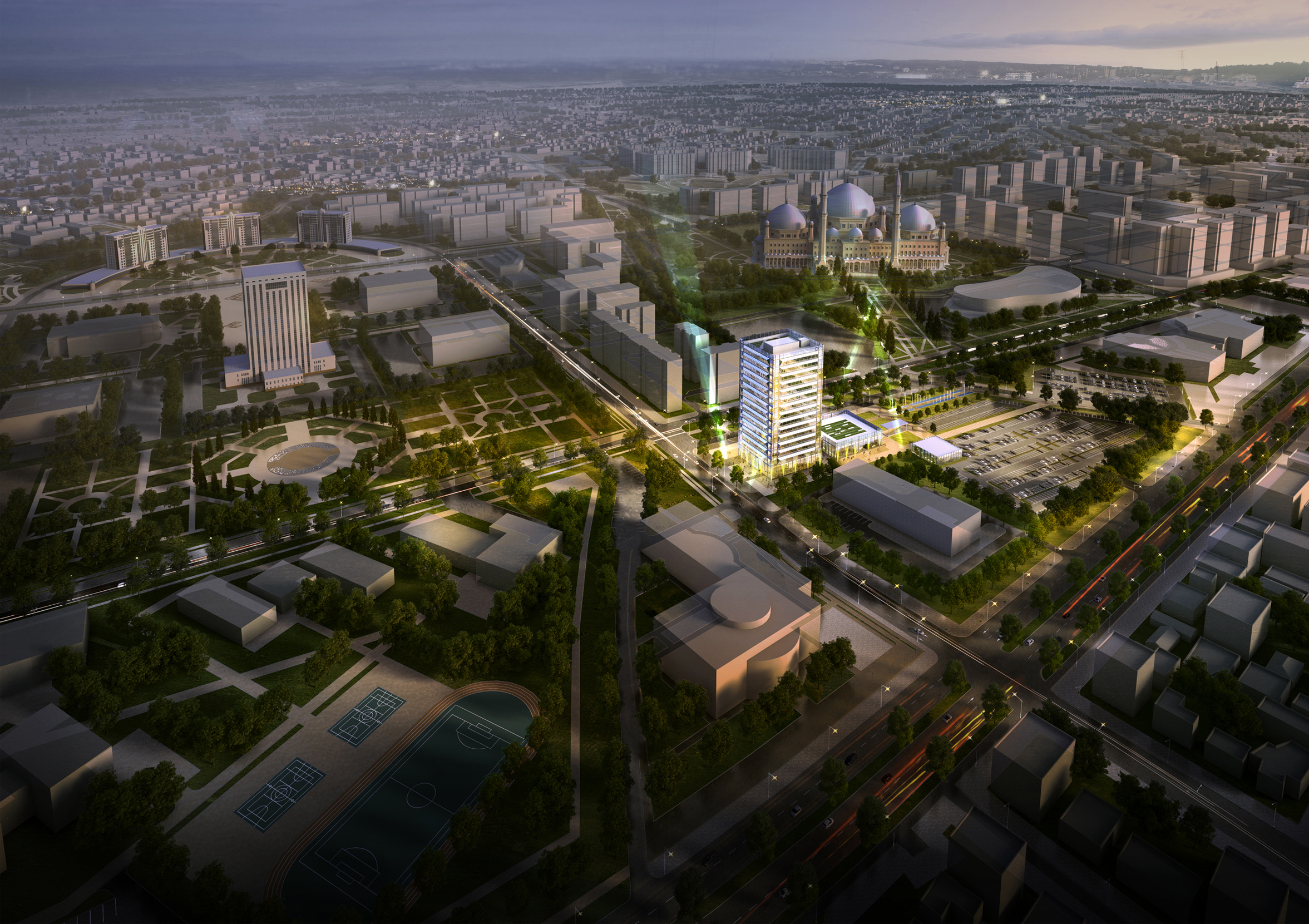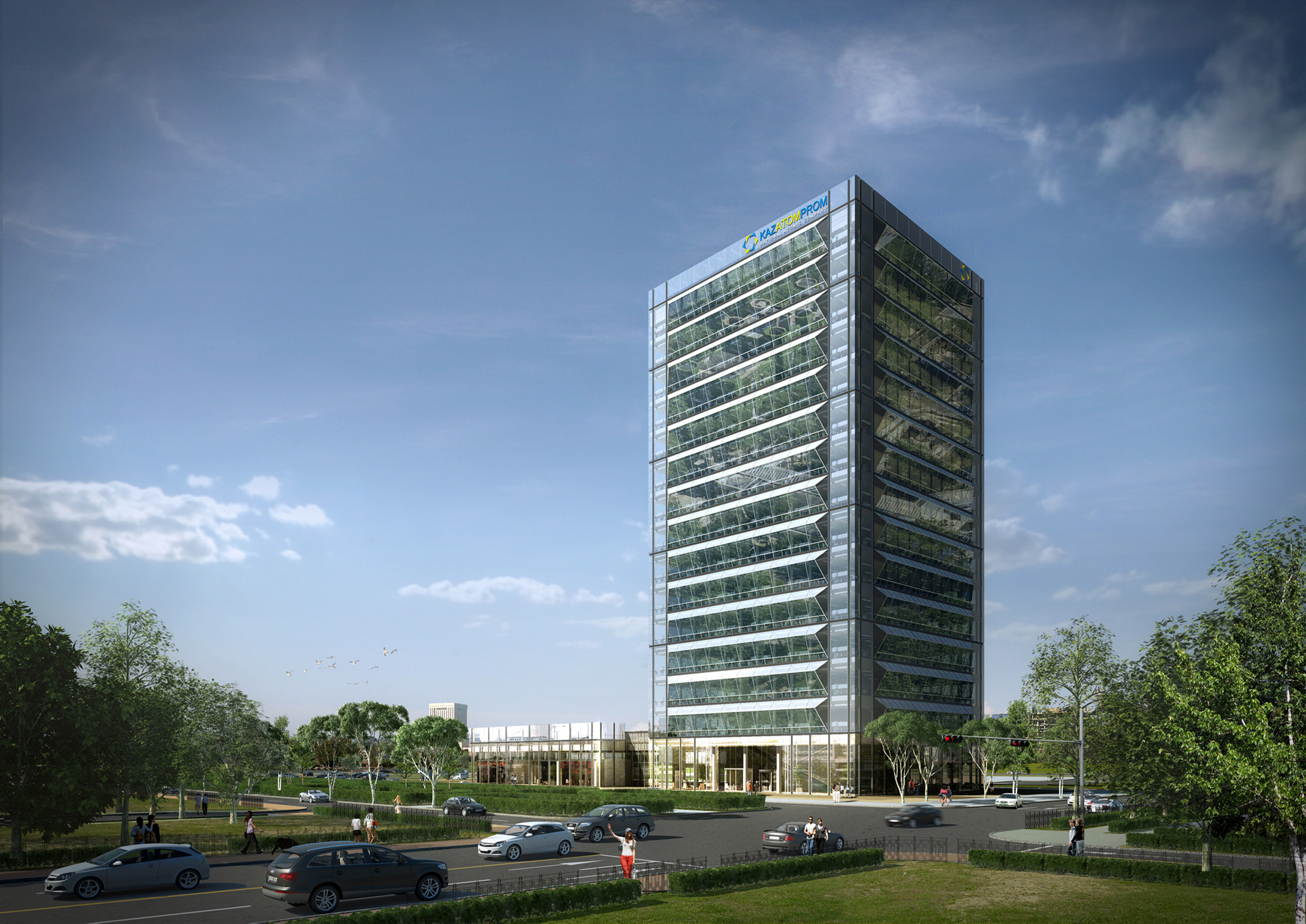 The Shymkent K Project is an international-level office building design proposal located in the new administrative center of Shymkent, the capital of southern Kazakhstan. Optimized for a 2.5-hectare site, the project offers office space for approximately 1,000 people through a modern architectural layout, taking advantage of open views toward the new city hall and mosque. This proposal is in the preliminary concept design stage, aiming to finalize an efficient space program and design guidelines. The project comprises one basement level and 14 above-ground floors, totaling approximately 20,822㎡ of gross floor area. The ground floor accommodates a reception area, a 300-seat conference hall, a 100-seat dining facility, pharmacy, retail spaces, and banking services. Floors 2 through 12 provide office accommodation for approximately 1,000 occupants, calculated at 12㎡ per person. The 13th and 14th floors house executive offices, exhibition spaces, and banquet facilities. The design maintains a core-to-floor area ratio below 20% to optimize office efficiency, while above-ground parking placement minimizes construction costs.