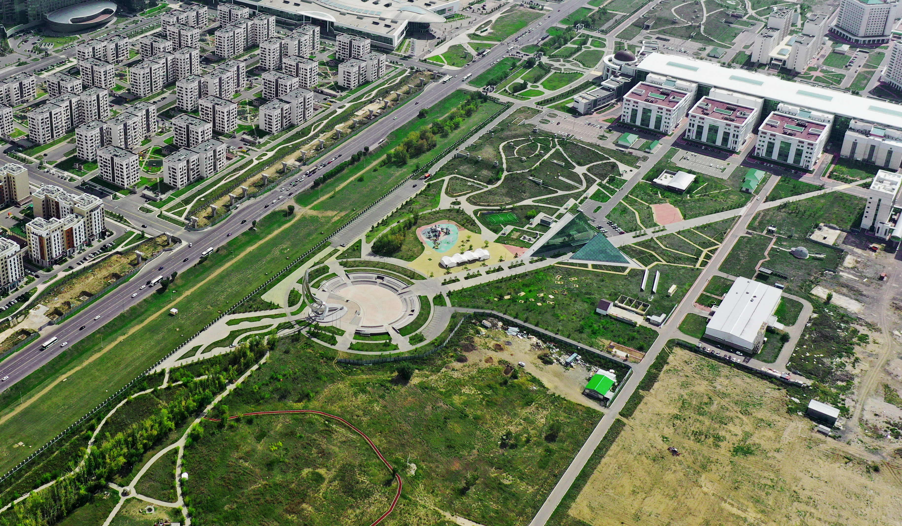 The park design for Nazarbayev University (NU) seeks to maintain Kisho Kurokawa’s original planning concept while enhancing the regional identity of Kazakhstan and the symbolism of NU, with a focus on efficient construction and maintenance. Comprising a Public Park (Park 1) and a Student Park (Park 2), the design reflects local culture and nature, offering a modern and sustainable environment. Landscaping and facilities using local resources are well-suited to Astana’s climate, and the design considers seasonal changes and user patterns to increase the campus's appeal.