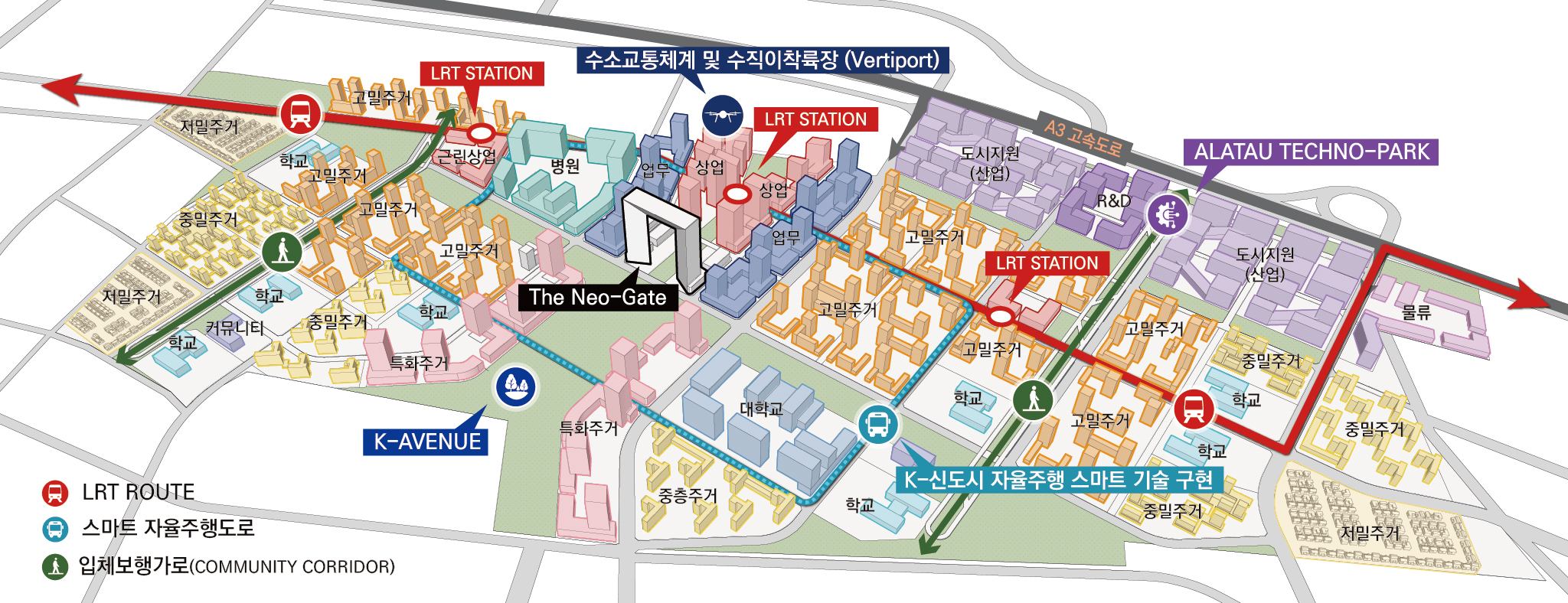 Grounded in in-depth market research and policy analysis, and supported by collaboration with leading local and international experts, the masterplan ensures financial feasibility, investment readiness, and long-term sustainability. As a pilot model for K-Smart City development, the project envisions Alatau as a future-ready, self-sufficient urban hub—where innovation, lifestyle, and economic vitality converge to shape a new benchmark for smart city development in Central Asia.