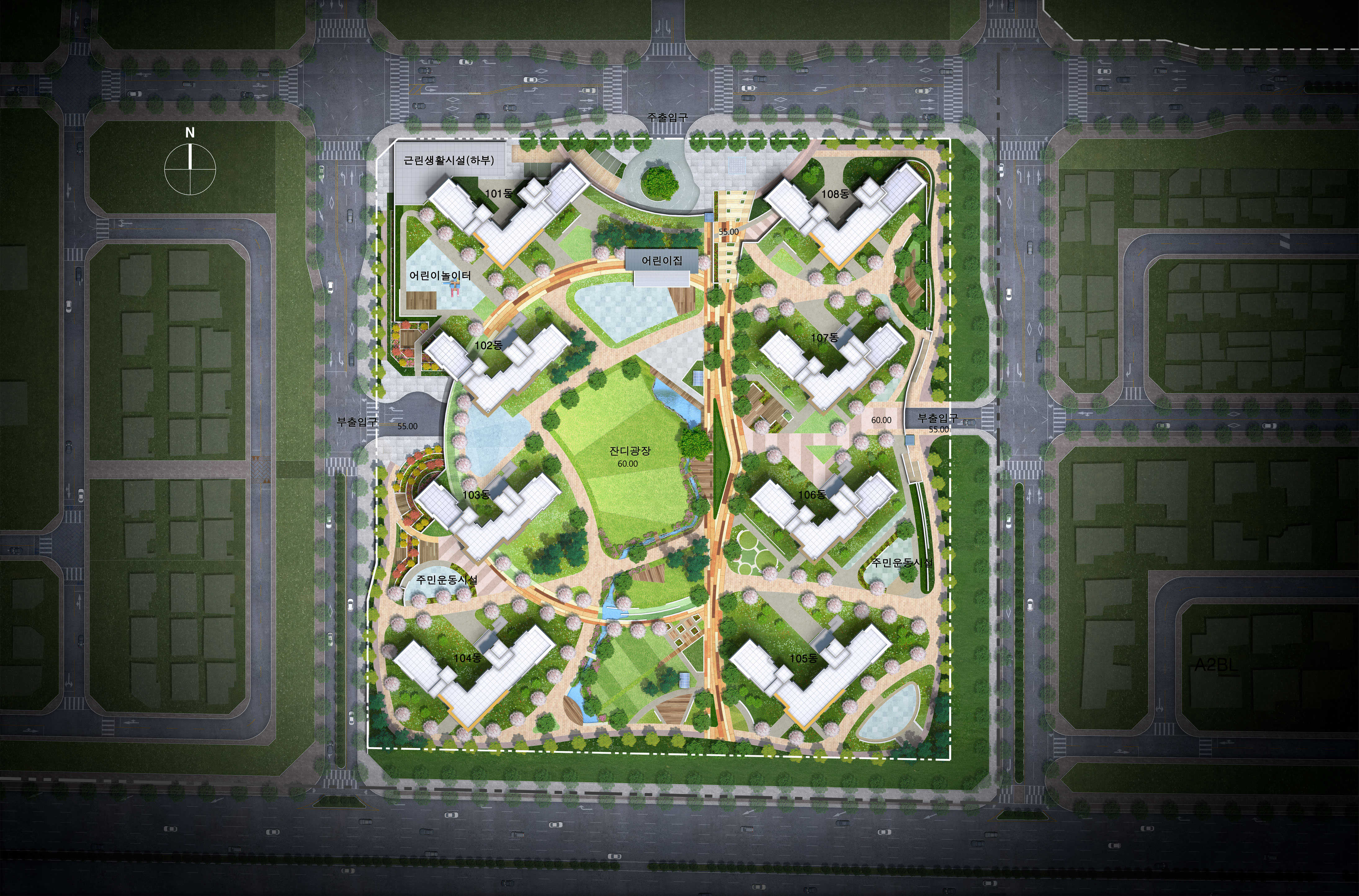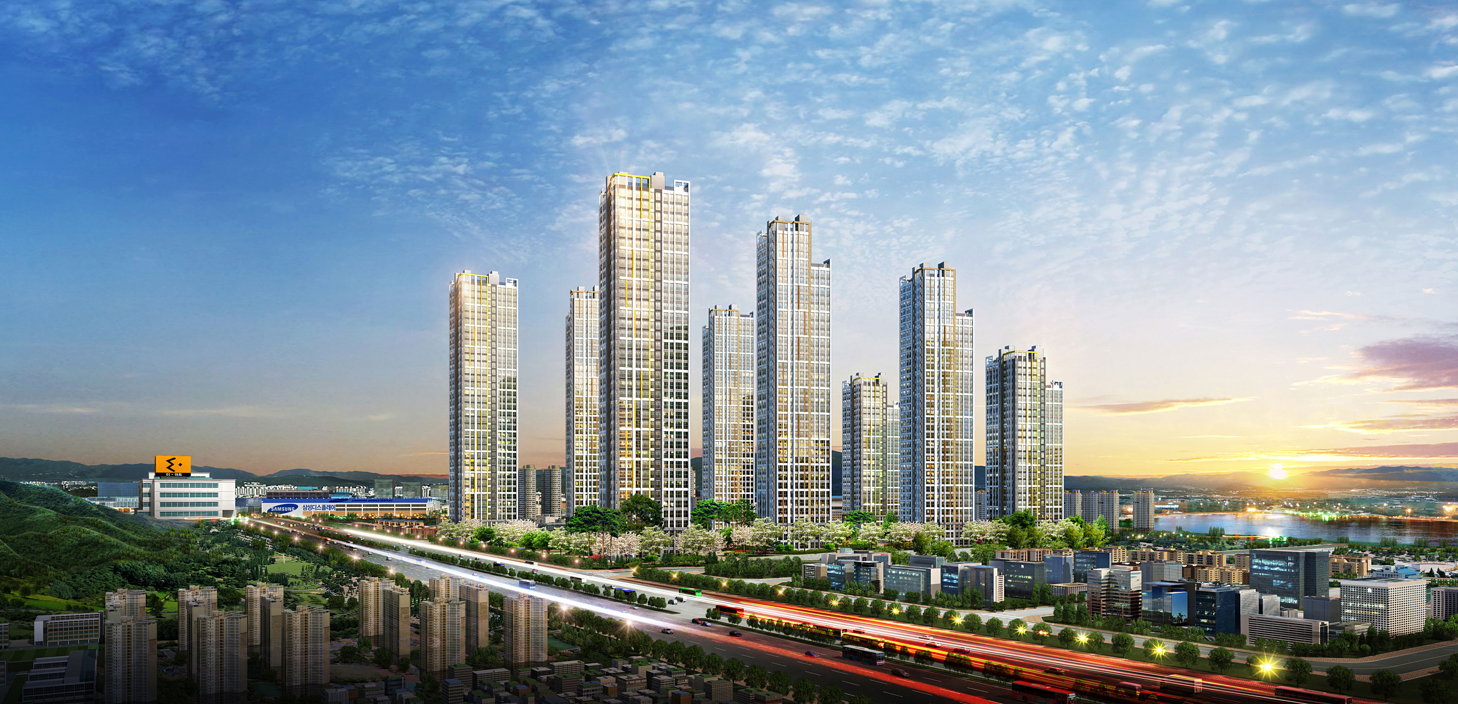 The complex is located near the 426,000㎡ Eopseong Reservoir and Notaesan Neighborhood Park, offering a highly pleasant living environment. The reservoir, planned as a lakeside park, and the walking trails of Notaesan Park provide residents with opportunities for relaxation and healing in nature. Within the complex, additional green spaces such as pavilion rest areas, sunken gardens, and community parks are planned to support a nature-friendly lifestyle. With a fitness center, golf practice range, library, and kids’ play and learning areas, the complex maximizes convenience for residents. It comprises 1,105 units in total, spread across two basement levels and 36 above-ground floors, with compact to medium-sized units ranging from 59㎡ to 84㎡ in exclusive area.
