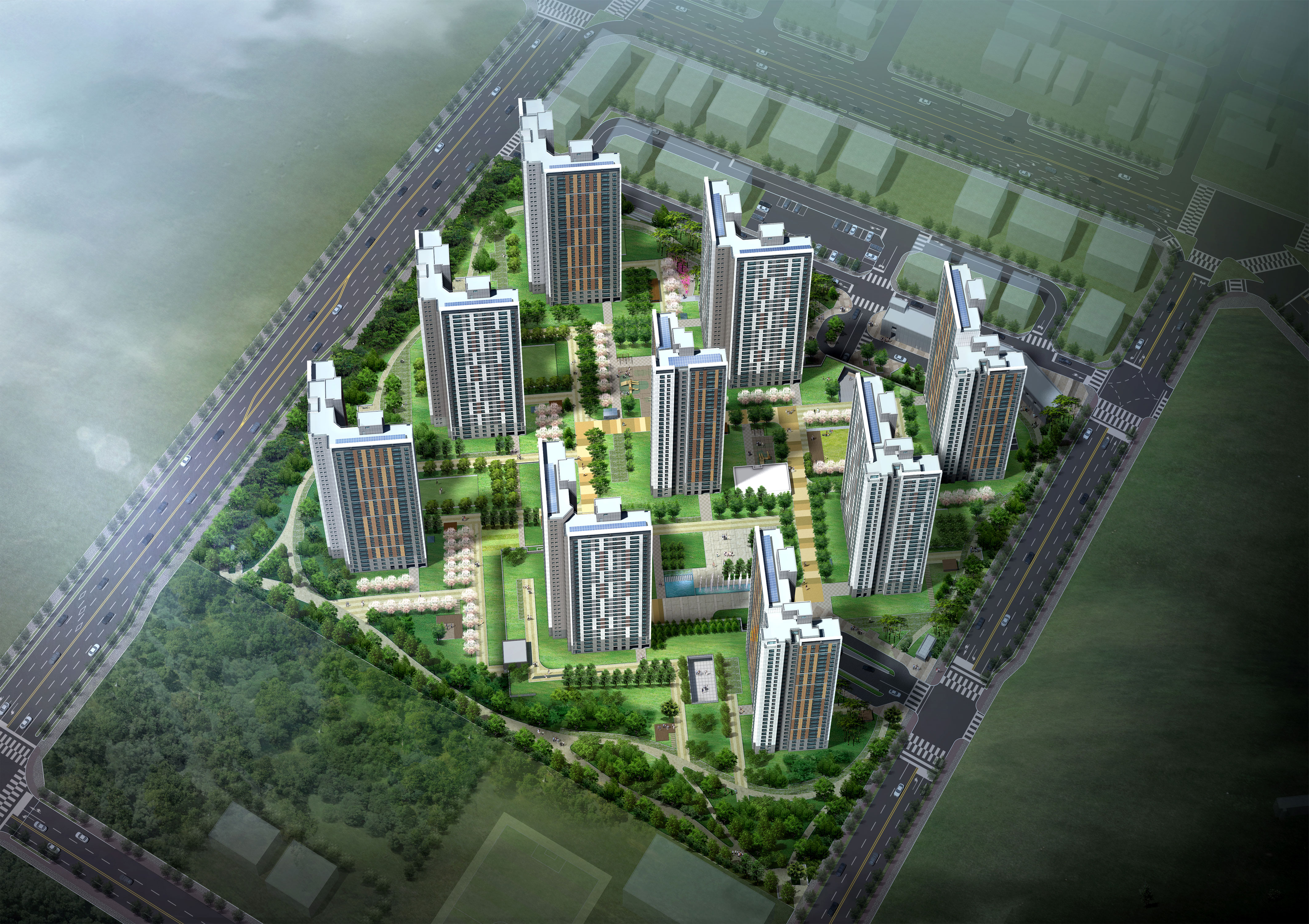 The park and school located to the south of the complex are naturally connected through pedestrian pathways, offering residents convenient access. A 4-meter-wide public pedestrian path running east to west along the southern boundary of the site gently connects the 23-meter road on the east and the 32-meter road on the west, facilitating smooth pedestrian access to the complex. The neighborhood park and school adjacent to this public walkway further enhance daily convenience for residents.