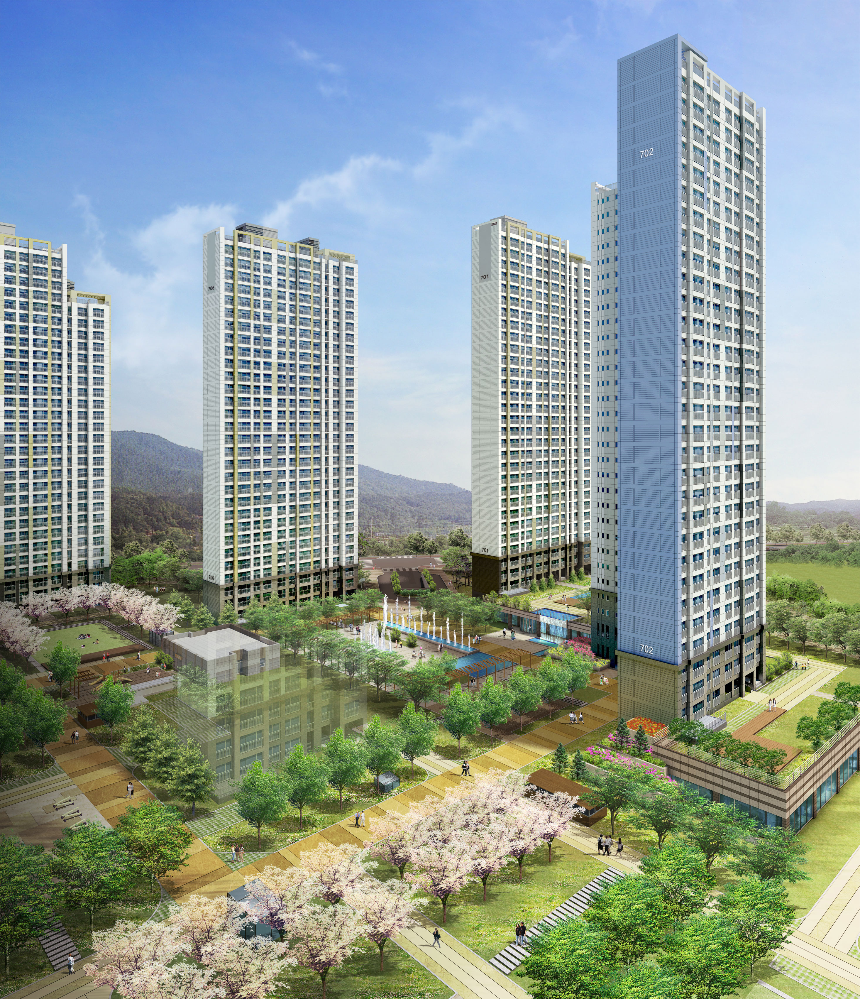 To create distinct value beyond that of an ordinary apartment, special attention was given to the landscaping of the complex. Along the pedestrian flow within the complex, landscape-themed areas and communal facilities are placed, enriching residents' lives with joy and relaxation. Notably, the semi-basement communal facilities are both practical and creatively designed, supporting community activities through innovative spatial use. At the heart of the complex there is a uniquely shaped obelisk-style residential building, which elevates the symbolic presence and elegance of the complex. This structure serves not just as a building but as a landmark that embodies the identity of the entire complex. Experience a refined lifestyle in a place where nature and people coexist in perfect harmony.